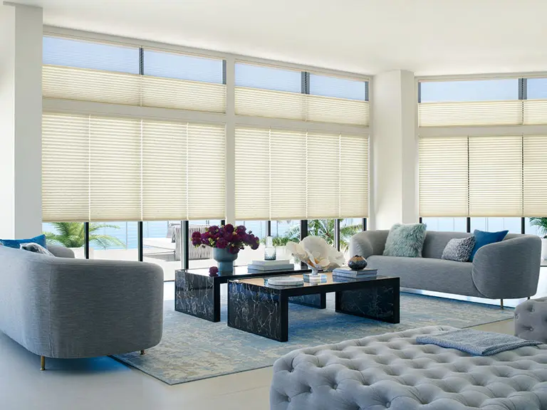 3. Shades: Shades are fabric-based window coverings that pull up and down using a cord system or a spring mechanism. Popular types of shades include Roman, roller, and cellular shades, each offering different looks and levels of insulation. Shades are excellent for achieving a sleek look while providing energy efficiency.